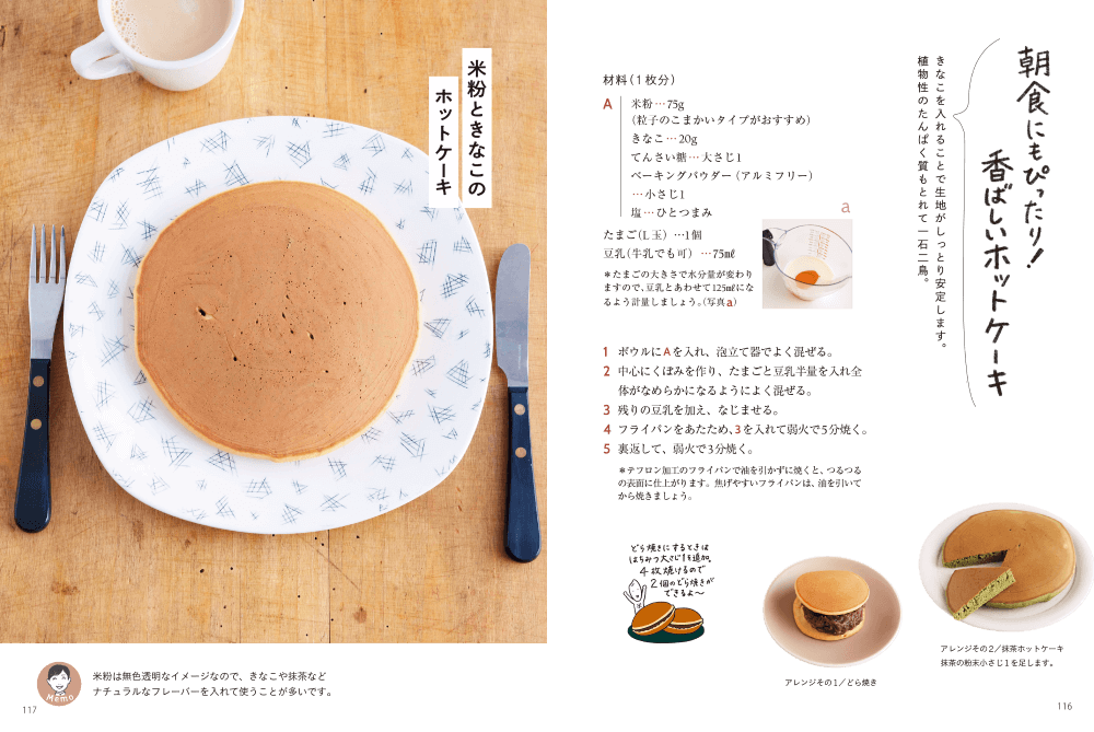 ホットケーキ、チヂミ、天ぷら、フォカッチャなど、米粉メニューも多数紹介。