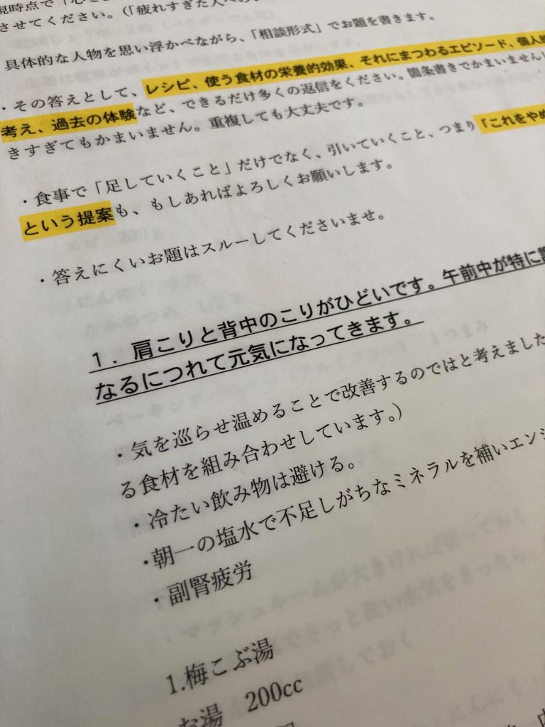 そんな実際の体調の悩みをお題に、レシピを出してもらっていたのだ。